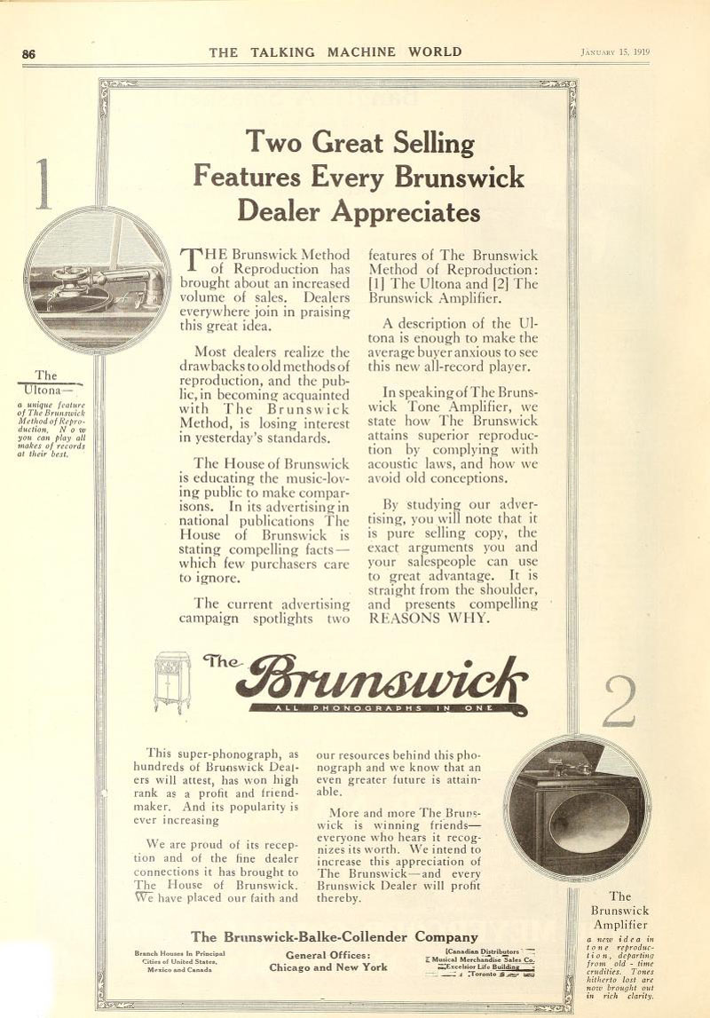 The Brunswick, The Talking Machine World, January 1919