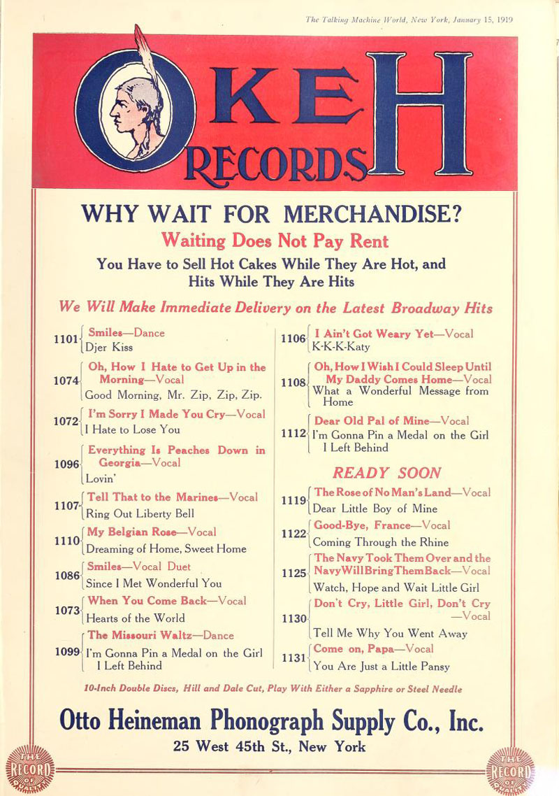 Okeh Records, The Talking Machine World, January 1919