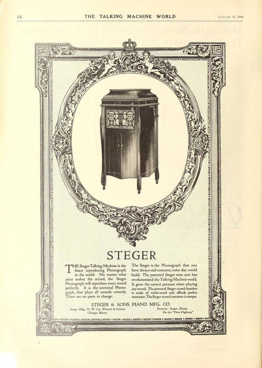 Steger Phonograph, The Talking Machine World, January 1919