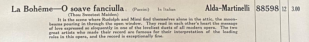La Bohême -- O soave fanciulla Victor Number 88598
