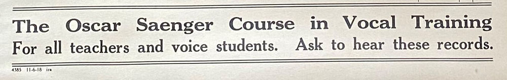 The Victor Company announces a complete course in vocal training by Oscar Saenger, The National Geographic, April 1917
