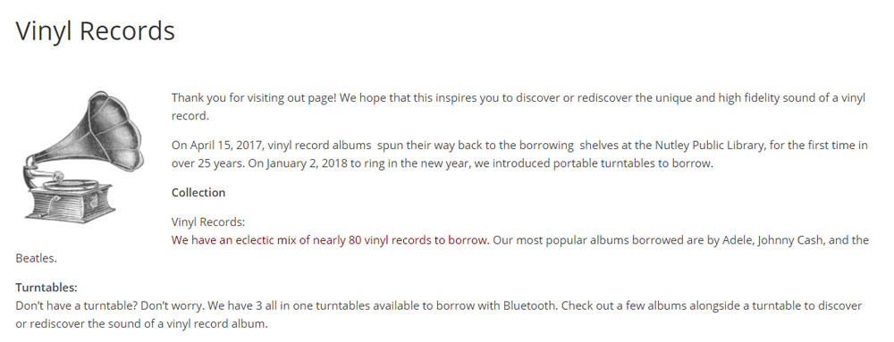of public libraries, like Nutley, offering LPs as one of their