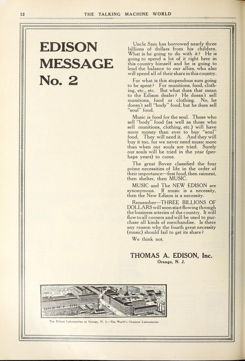 Edison Message No. 2, The Talking Machine World, July 15, 1917