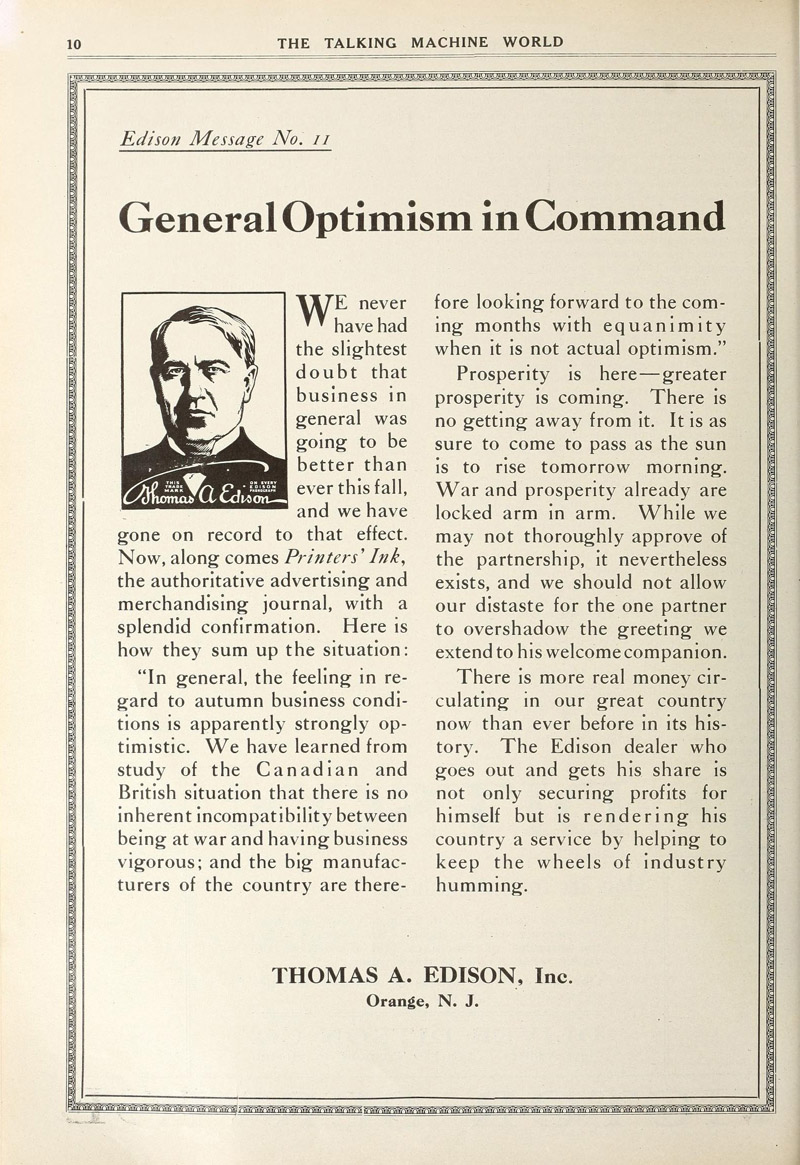 Edison Message No. 14, The Talking Machine World, December 15, 1917