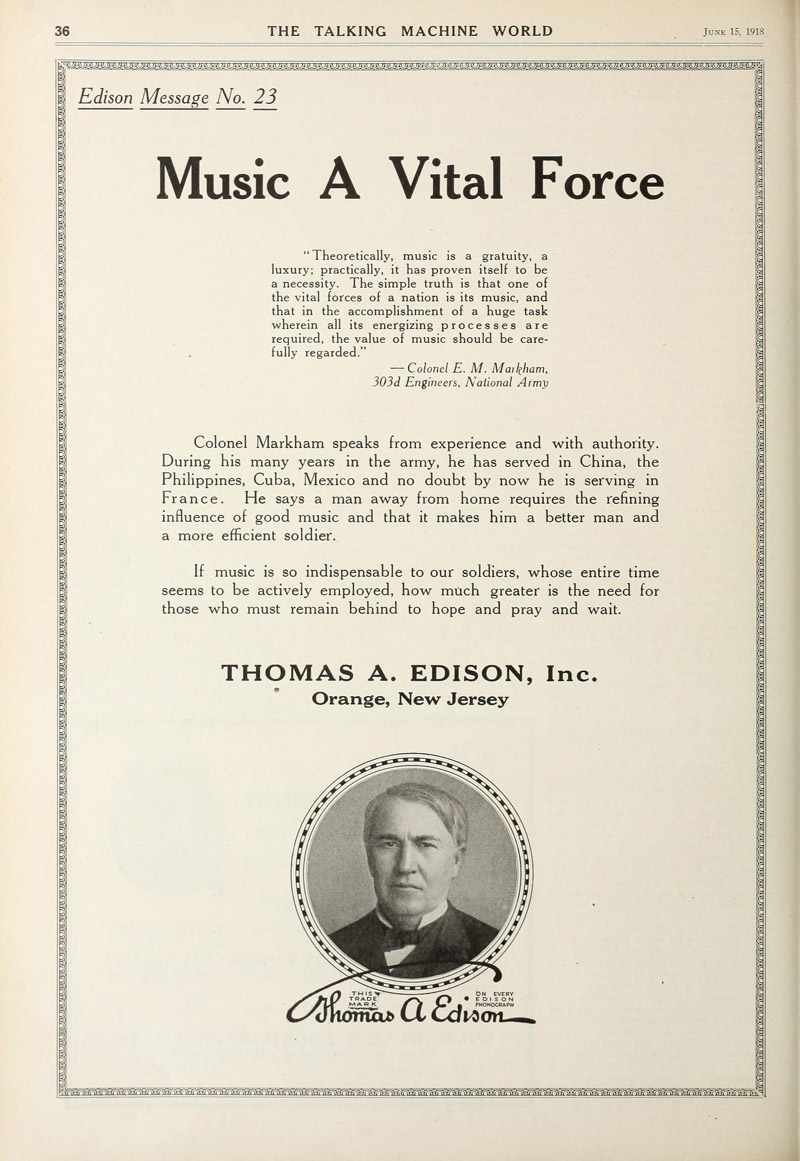 Edison Message No. 23, The Talking Machine World, June 15, 1918