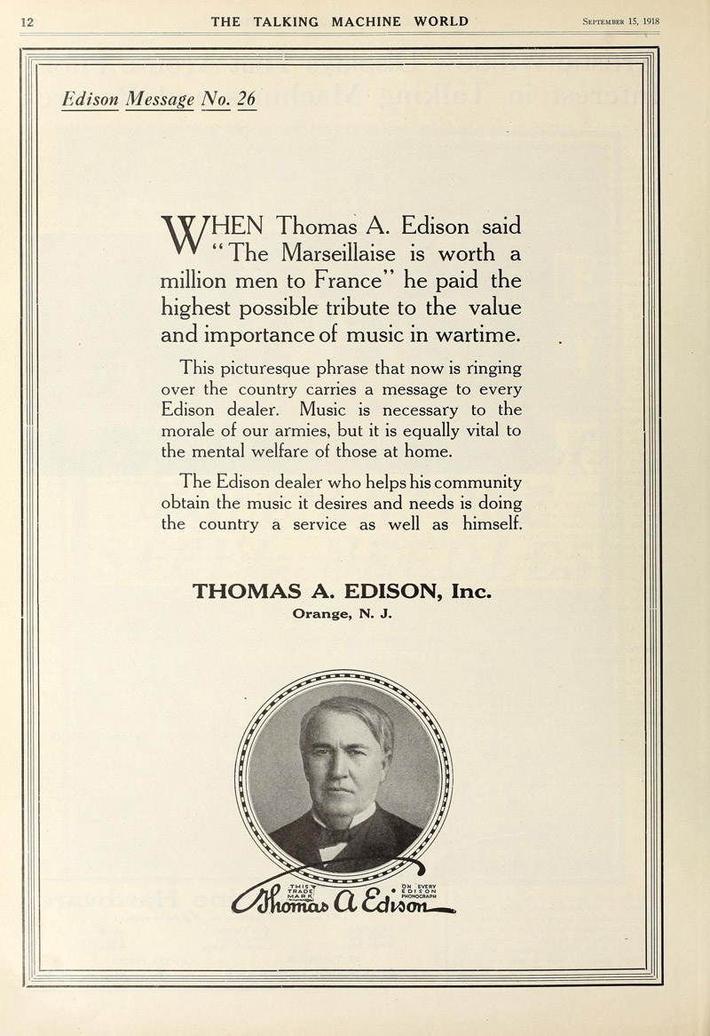 Edison Message No. 26, The Talking Machine World, September 15, 1918