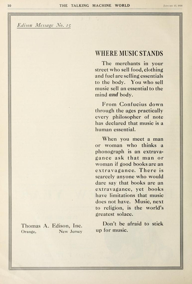 Edison Message No. 15, The Talking Machine World, January 15, 1918
