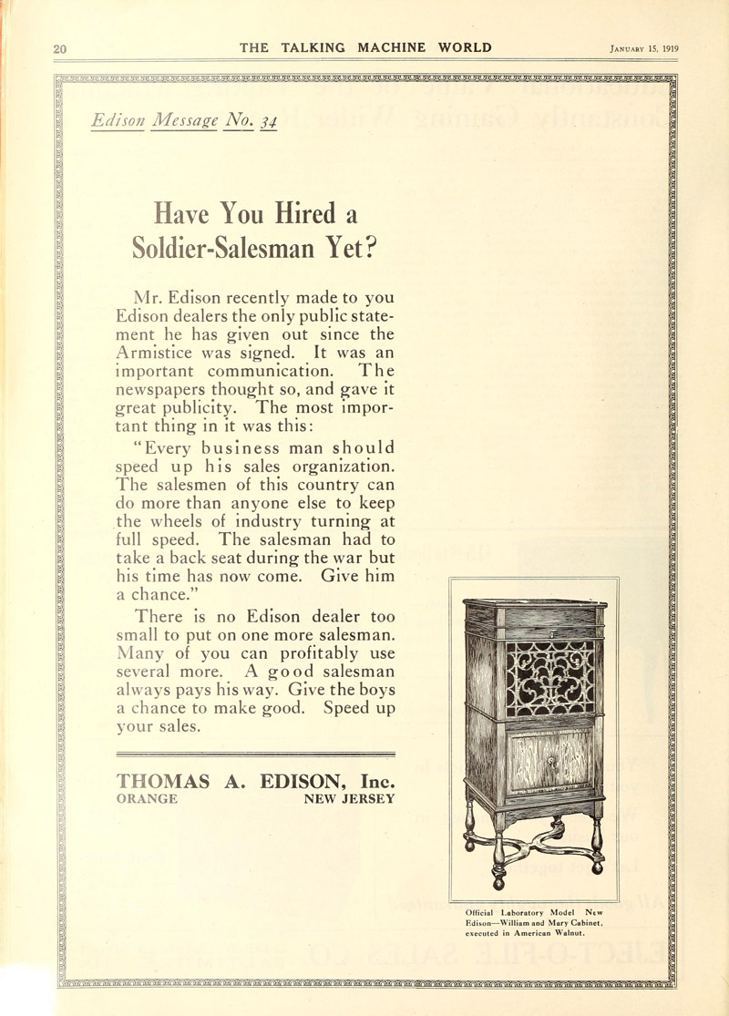 Edison Message No. 34, The Talking Machine World, January 15, 1919