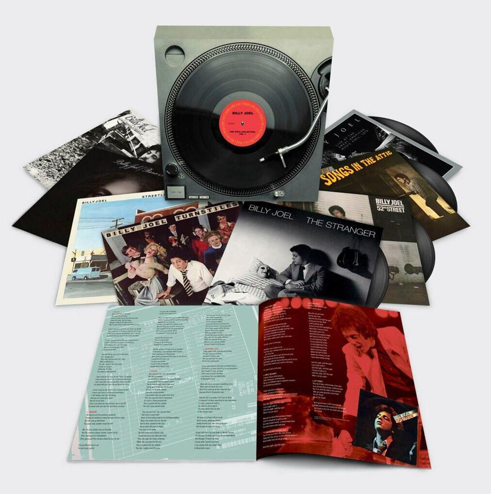Although these holiday suggestions include other music related suggestions of books and merchandise, it starts with the suggestion of Billy Joel's 50th Anniversary Collection of vinyl records, features pictures of Joel's The Vinyl Collection Volume 1 on a turntable and a picture of what's inside the nine LPs box set.