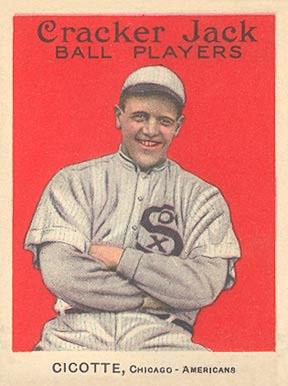 In 1915 Cicotte was a baseball celebrity with his own Cracker Jack Ball Players card and clearly a potential Hall of Famer. Sadly, in 1919 he was one of the eight who "sold out baseball."
