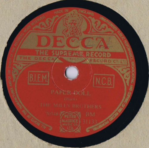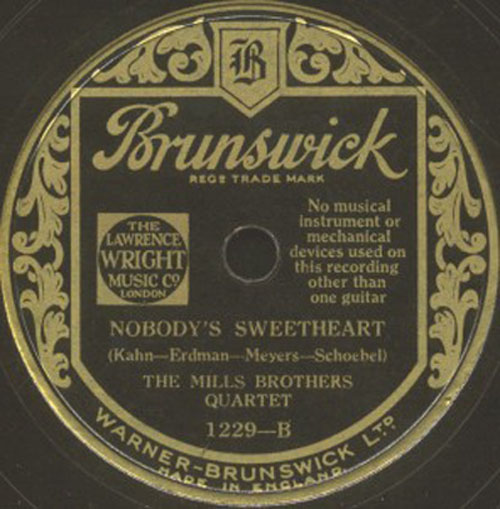 By the time I was in the fifth grade I'd discovered the wonders of her RCA Victor phonograph. My regard for melody and lyrics in popular music may have started when I learned to put Decca records on the turntable and listen to the Mills Brothers having their way with "Lazy River," "You're Nobody's Sweetheart Now," and "Paper Doll."