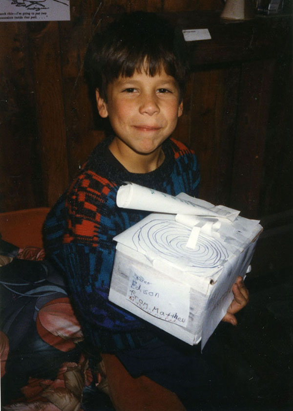 Matt presenting his artistic gift for the Phonograph's 113th Birthday. Matt wrote: "To Edison from Matthew - This is my Dad" (mixing it up with Victor's Nipper and "His Master's Voice").