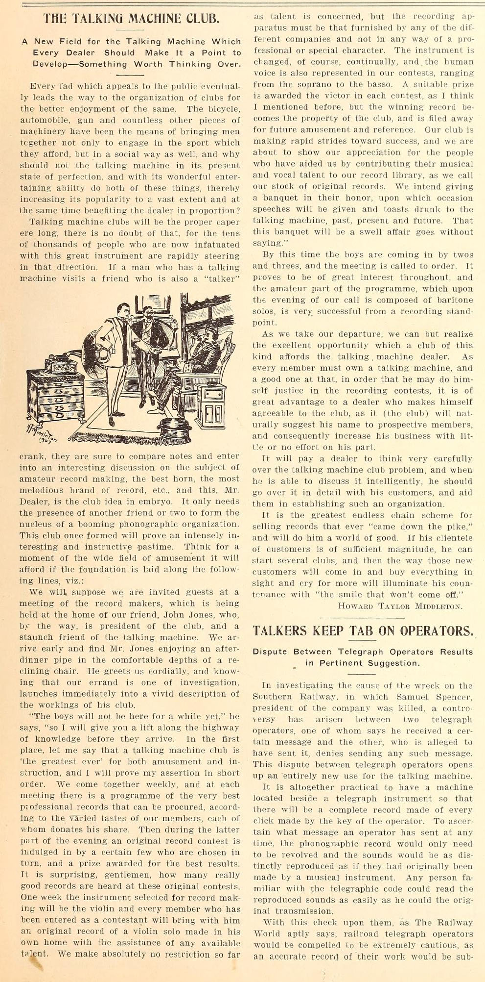 The Talking Machine Club by Howard Taylor Middleton, January 15, 1907 (See below for complete text).