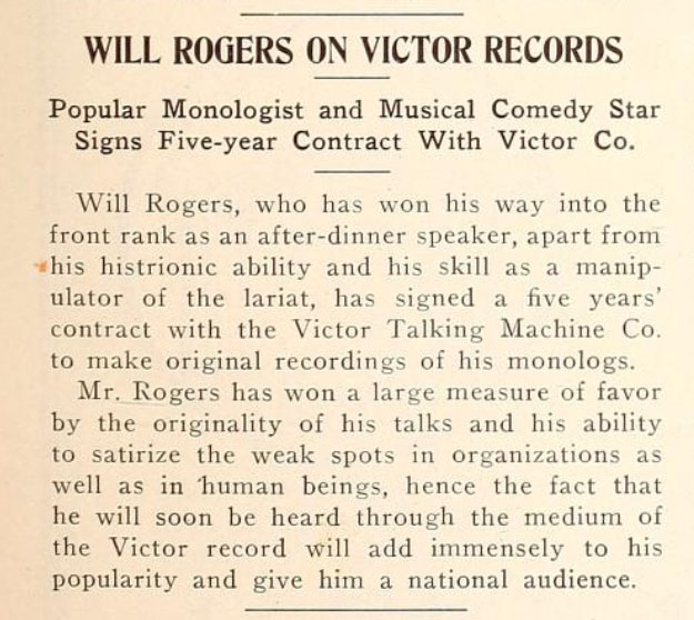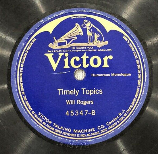 Will Rogers* Victor record 45347-B "Timely Topics" 1923