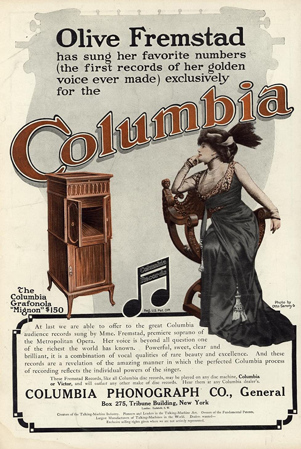 Columbia advertisement courtesy of The Nordica Memorial Association.