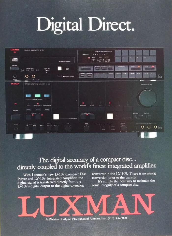 Digital Direct. Luxman D-109 Compact Disc Player, 1989