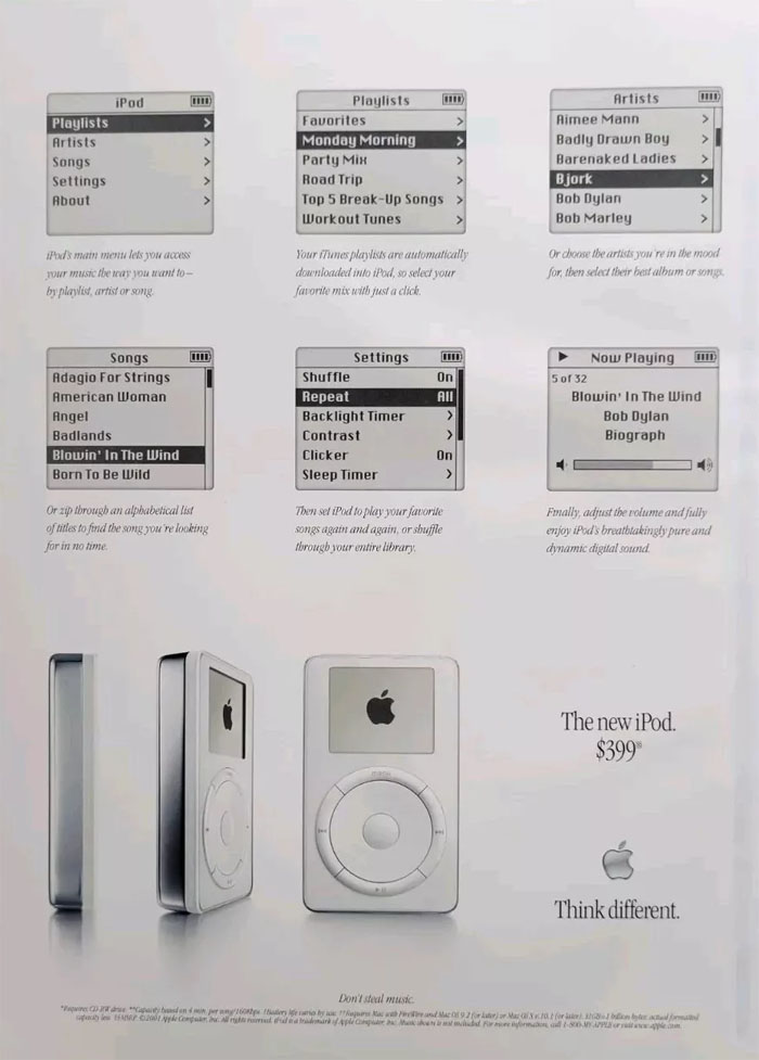 iPod magazine insert ad, 2001