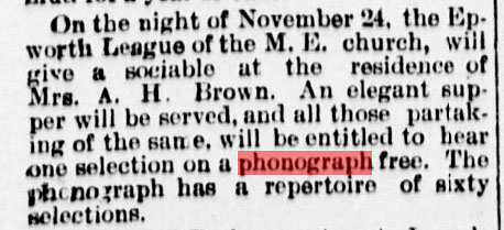 of phonograph 'concerts' in small towns where the phonograph was being