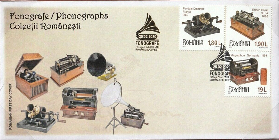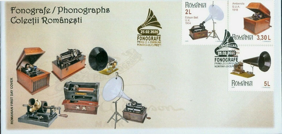 February 25, 2020 - First Day Cover celebrating Romanian Phonograph Collection as the greatest phonograph collection in the world.