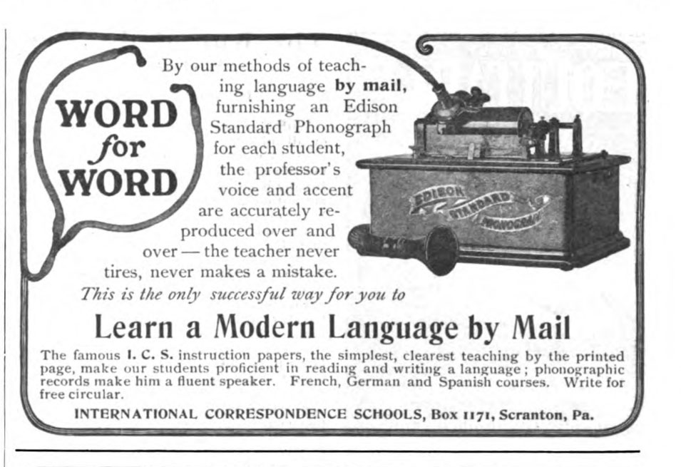 in 1897 was promoted as a 'French Teacher, German Teacher, Spanish