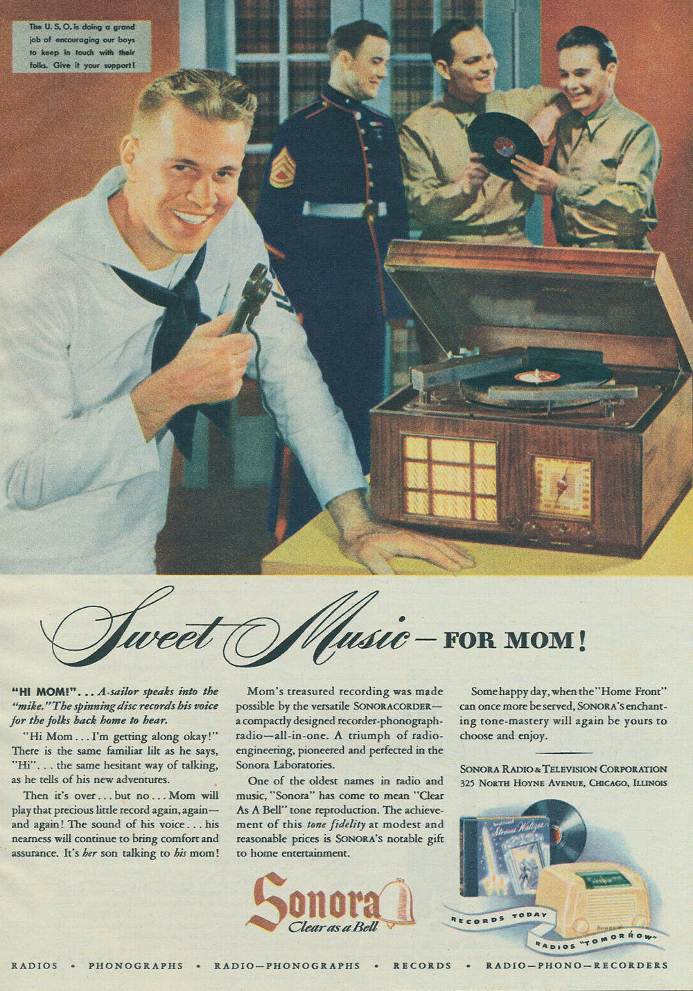 with soldiers listening to a phonograph and these could be sent as