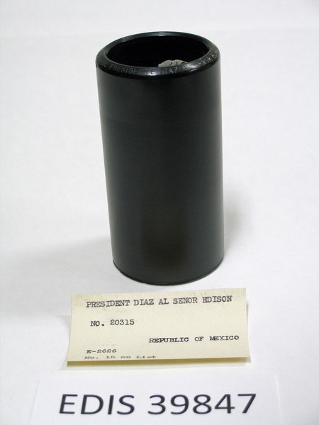 President Diaz of Mexico to Edison thanking him via a cylinder record
