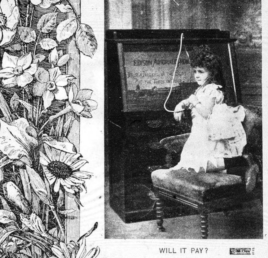 The phonograph's real mission, because of coin-in-the-slot phonographs, "is disparaged and humiliated by being placed side by side with the nickel-in-the-slot weight machines, and every other speculative attraction of a circus show or a bar room, in order that it may turn an honest penny."