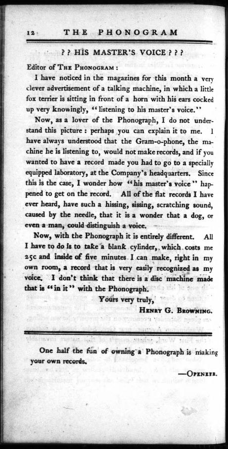 then prominent in the sale of wax cylinder phonographs, to see