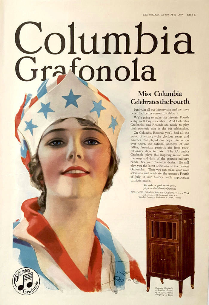 patriotic music" said a 1919 Columbia magazine ad still featuring
