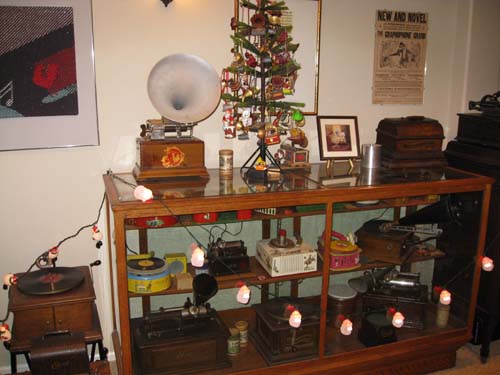 Phonograph Holiday tree and to the phonograph display cases and machines.