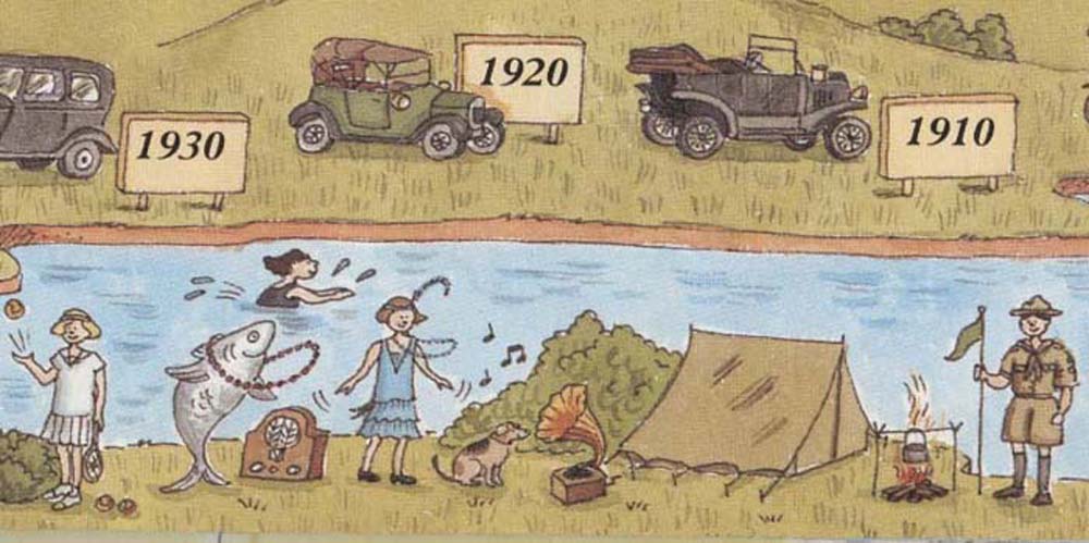 This is a kid's book about time - Now, Moments, Seconds, Minutes, Hours, Nights & Days, Weeks, Months, Years, Decades, Centuries, Millennia, Ages, Eras, Light-years, Bang, Next and Forever. A phonograph is pictured on the cover of the book as part of the clock's circular marking of time. A time-line in the chapter "Centuries" shows a phonograph close to the 1920 time marker.