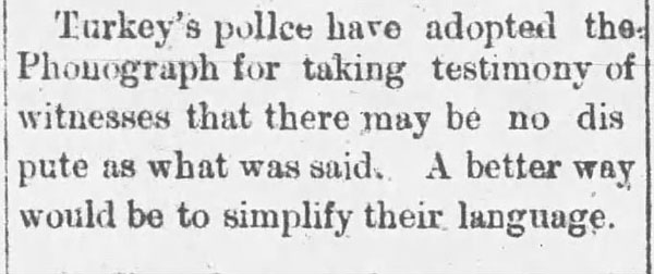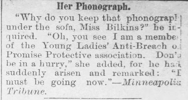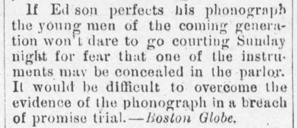 “A practical joker secretly introduced a phonograph in the kitchen…” The Rushville Standard, May 8, 1891