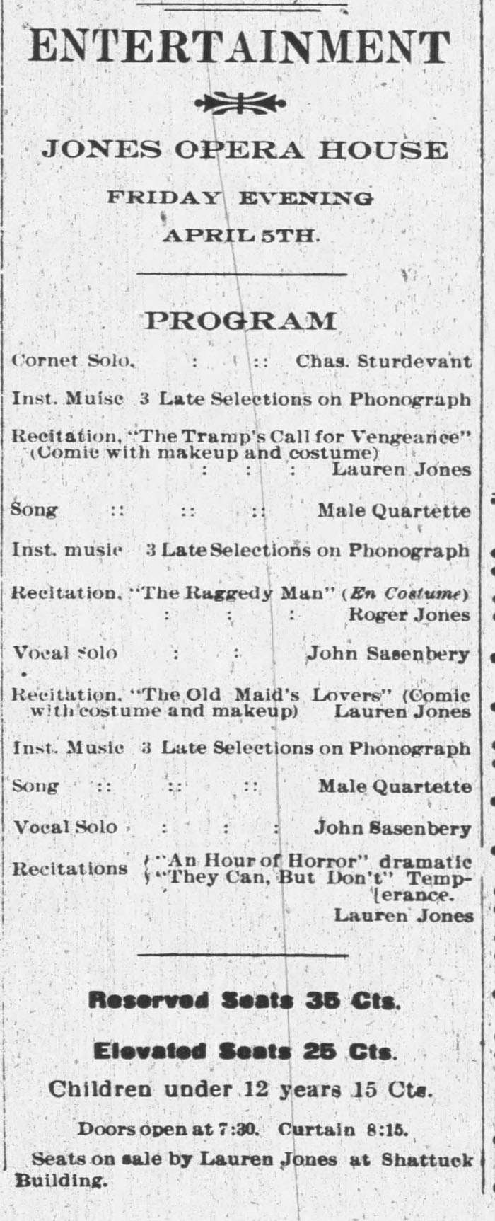 “phonograph entertainments,” Rushville Standard, February 14, 1901