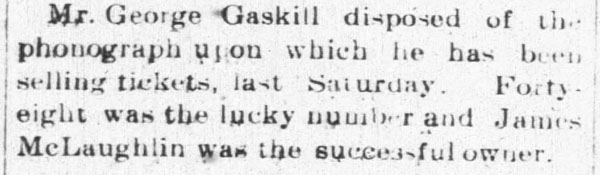 Advertisements for local businesses that were selling phonographs and records are also included along with 'notices' of recent purchases of a phonograph that would be identified in newspapers as part of its promotion.
