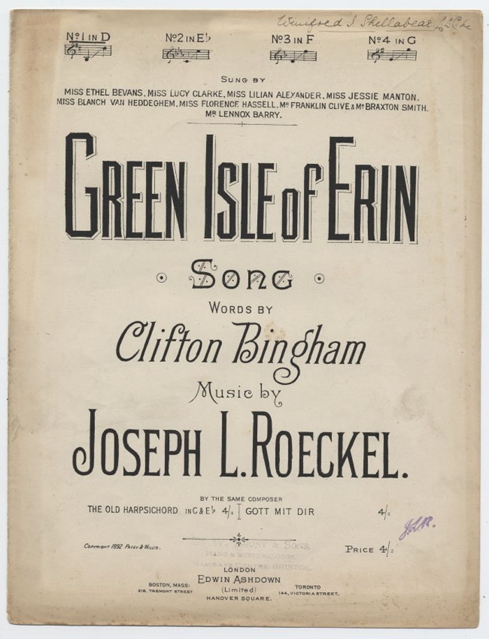 by Edwin Ashdown, Ltd., London, 1892. (Source: Irish
