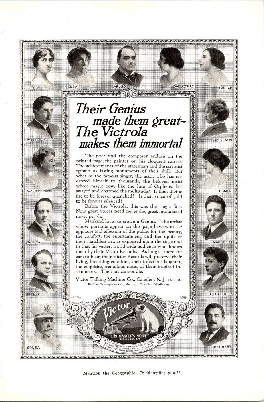 Victor Records" and "the Victrola makes them immortal."