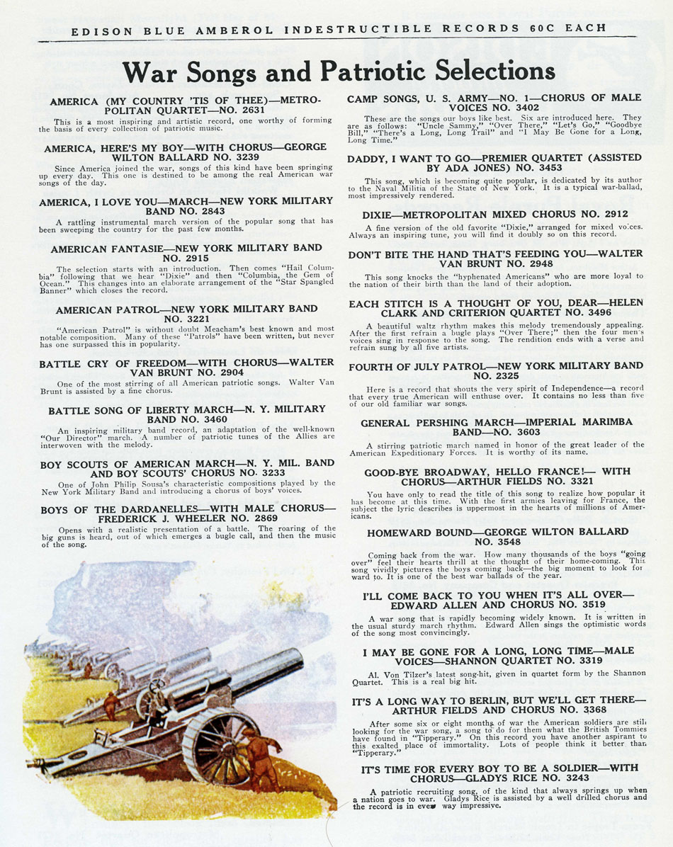 songs which became popular phonograph records during World War I)