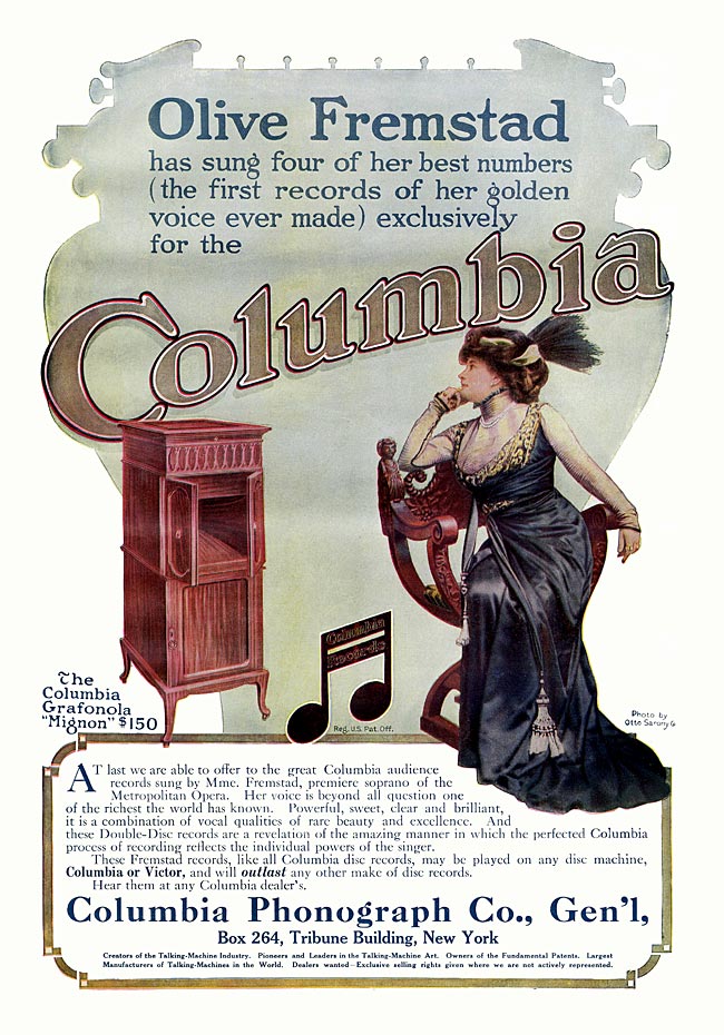 Fremstad made phonograph records and appeared in phonograph advertisements
