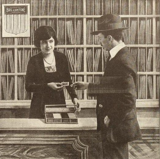 Come into a Music Store, request to listen to a record and buy records or needles for your talking machine.