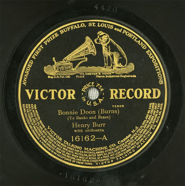 Bonnie Doon (Ye Banks and Braes o' Bonnie Doon sung by Henry Burr with orchestra, Victor Record Number 16162 (Matrix Number B-2460) recorded on August 21, 1908 (Courtesy The Library of Congress)