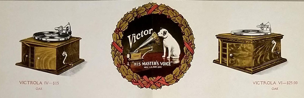 A few days later Ben is "looking into a window of a music store in which was printed a placard announcing a number of new Victrola records." The Valentines' Victrola, p. 29