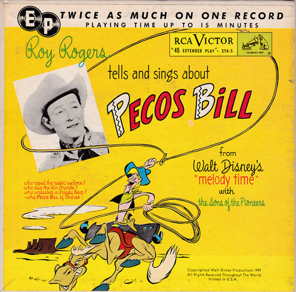 Roy Rogers tells and sings about Pecos Bill Roy Rogers on RCA Victor Extended Play 45 RPM, EYA-5, c.1950