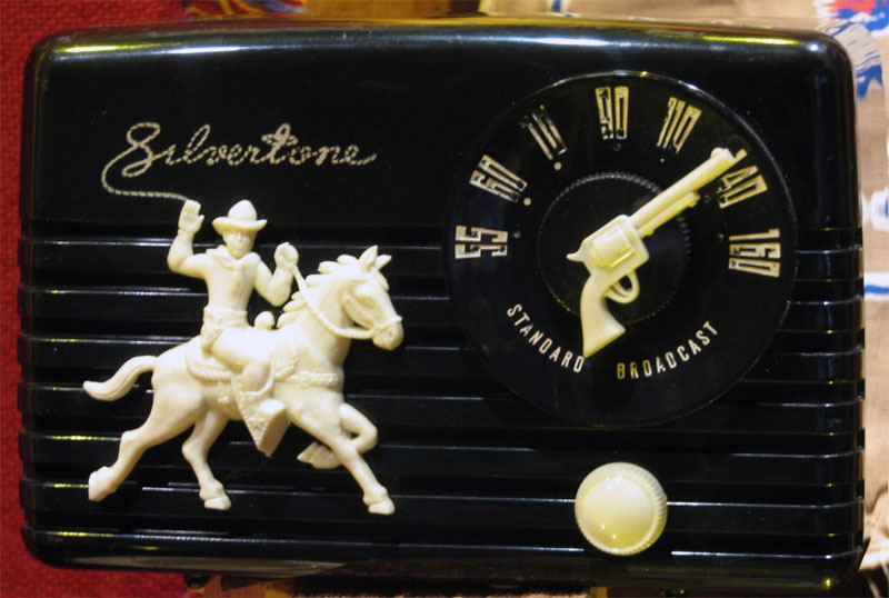 Silvertone Model 4 AM Cowboy Tube Radio referred to as the Roy Rogers Radio (Courtesy Larry Small and Flatwater Toys). Silvertone was sold by Sears.