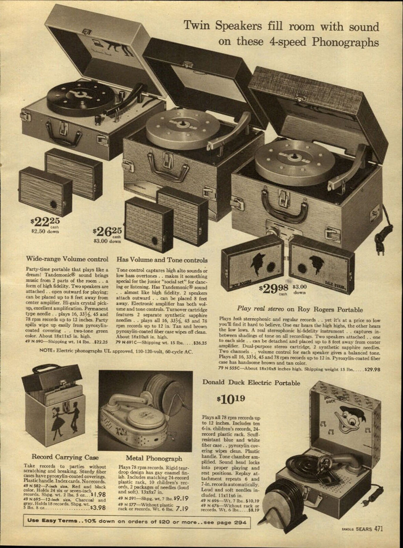 Roy Rogers Portable Phonograph, Sears Catalog, 1961 (See full page ad)