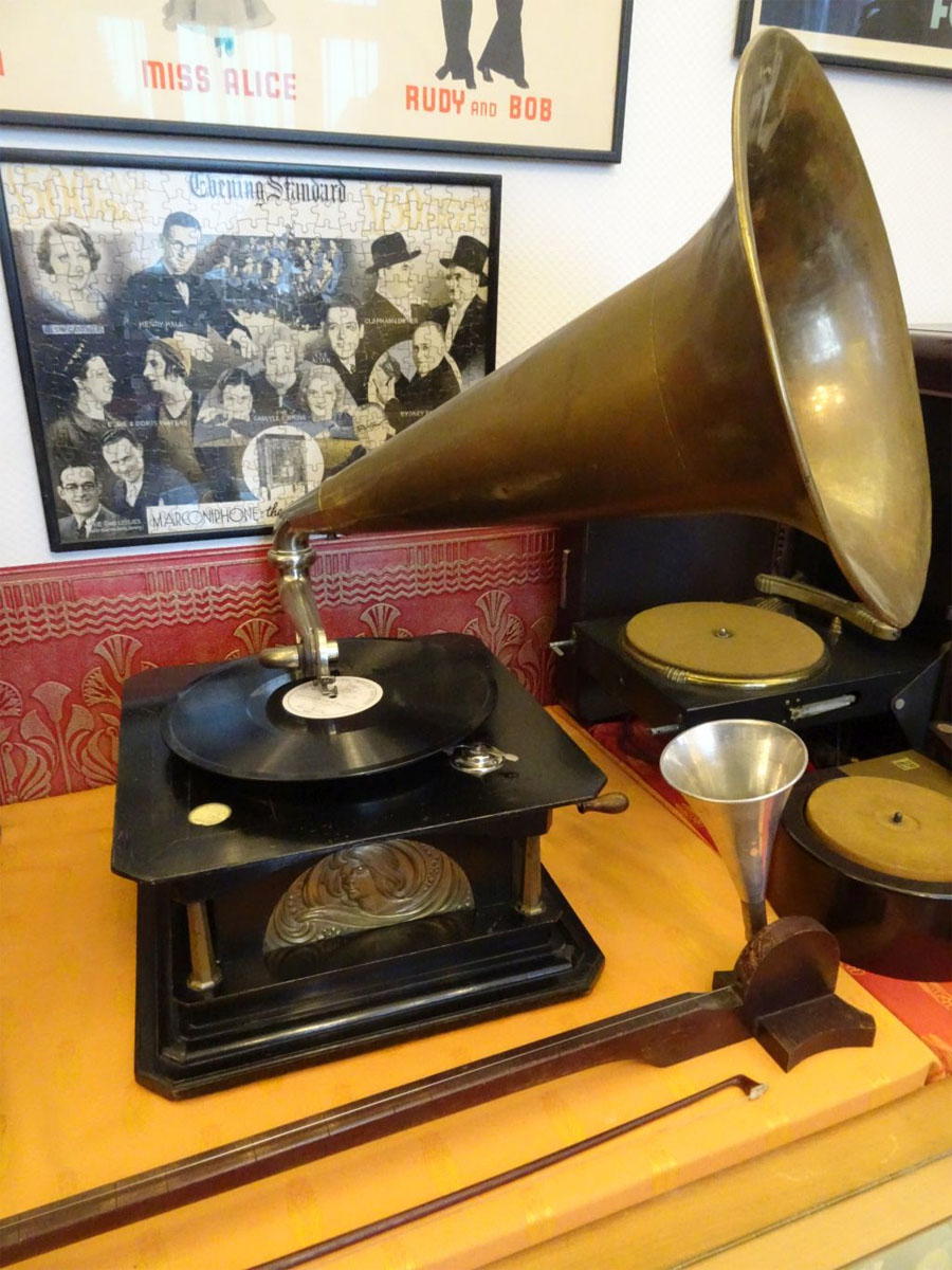 of historic record players as well as contemporary publicity
