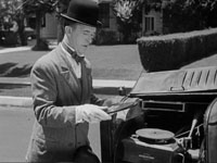 Zon-O-Phone Record Player - Laurel & Hardy, MGM. Oliver asks Stan to turn on the radio as they drive down the street. Stan pulls a string and they listen to a song. When the song ends they stop the car, Stan opens the hood and there is a record player inside supplying their 'radio' music. Stan changes the record, gets back in the car and they listen to more music. See Screenshots and Movie Clip.