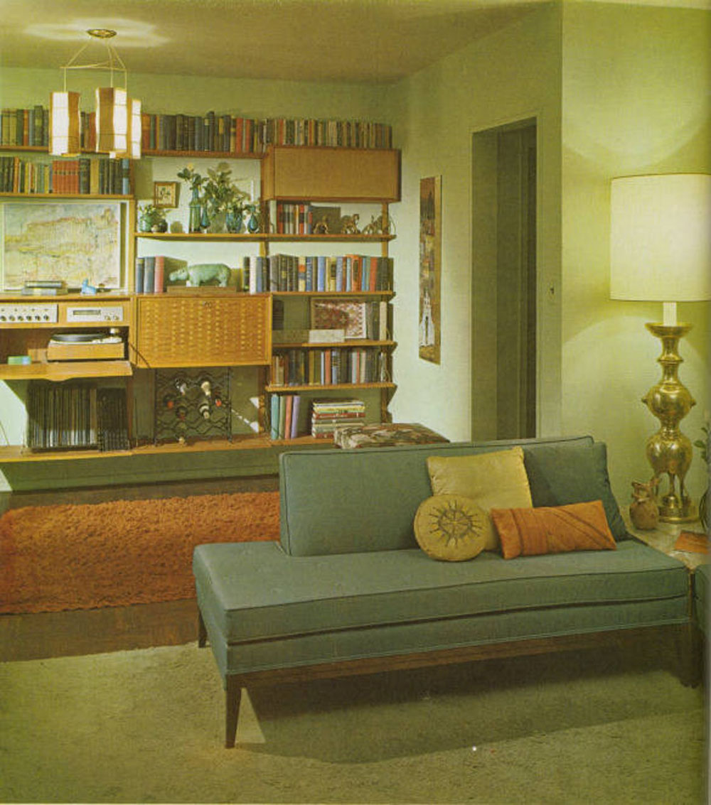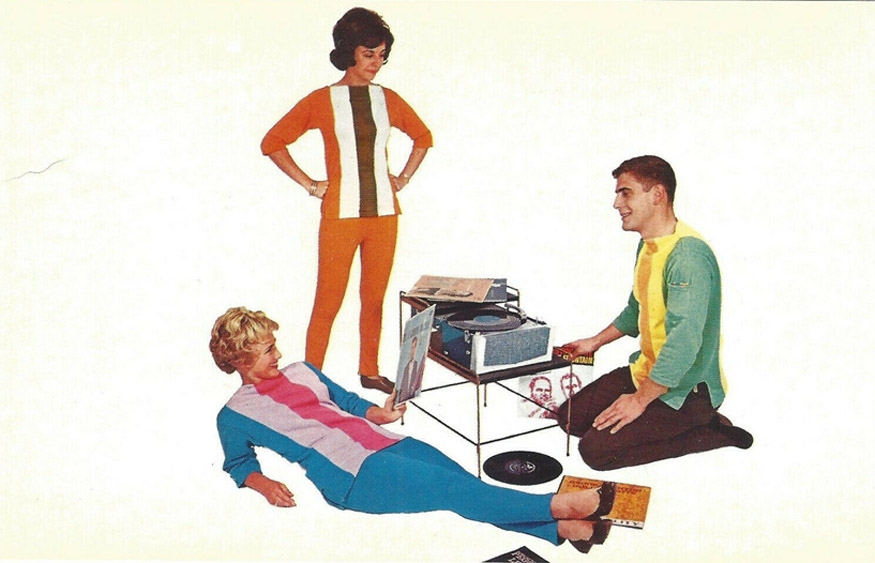Ozite Carpet Tiles in Rec Room with Retro open horn LP Phonograph, 1968 (PM-2043)