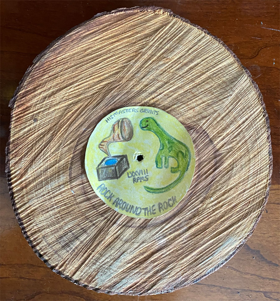 Record is 7" D x 1" H slice of wood cut from tree trunk).