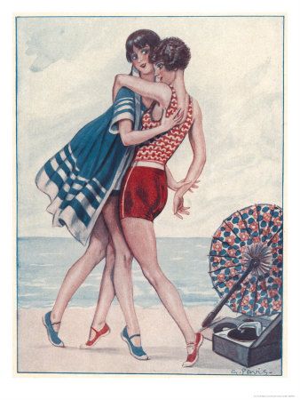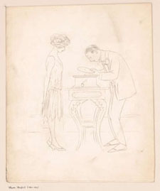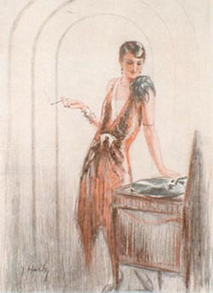 woman with phonograph, F. Hardy, 1929