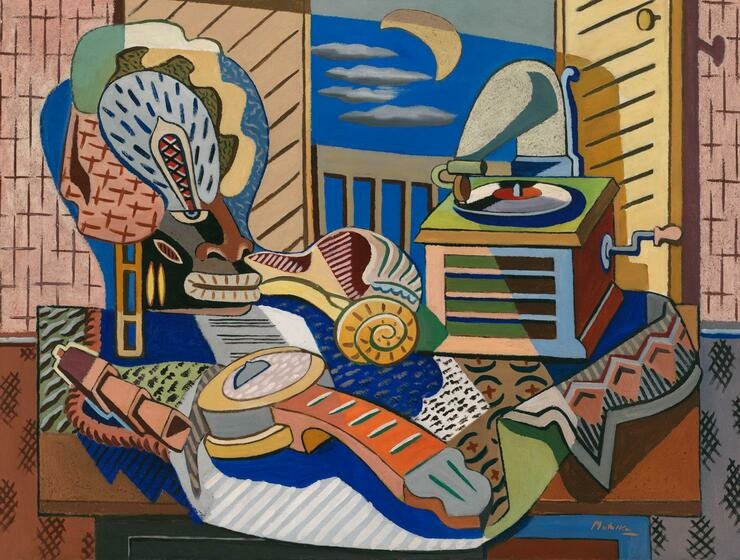 with Phonograph, Mask and Shell" by Jan Matulka, c. 1930